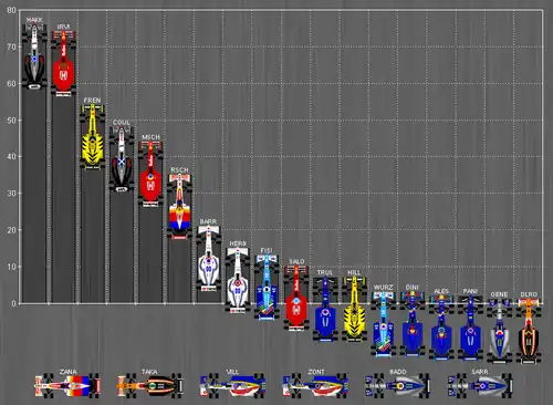 | 5 | Giancarlo Fisichella | Benetton-Playlife | + 1 Runde |