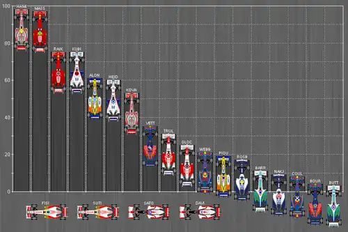 1 McLaren-Mercedes fiel aufgrund einer Strafe infolge der Spionage-Affäre automatisch auf die letzte Position in der Teamrangliste.