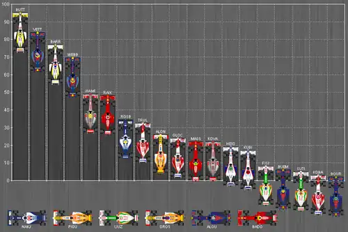 - ↑ Die Startnummern 18 und 19 wurden wegen des Rückzugs des Honda-Teams nicht vergeben. Das Nachfolgeteam Brawn GP bekam als Neuling traditionell die letzten Startnummern, das Team Force India rückte aus Marketinggründen nicht auf.