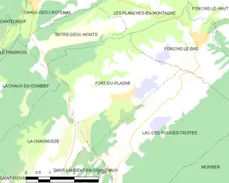 Nachbargemeinden von Fort-du-Plasne sind Entre-Deux-Monts und Les Planches-en-Montagne im Norden, Foncine-le-Bas im Osten, Lac-des-Rouges-Truites und Saint-Laurent-en-Grandvaux im Süden sowie La Chaumusse und La Chaux-du-Dombief im Westen.