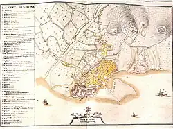 In der langen Auseinandersetzung zwischen Karl V., König von Spanien und Kaiser, und Franz I. war Genua unter der Führung von Andrea Doria ein treuer Bündnispartner des Ersteren, während Savona auf der Seite des Letzteren stand.[5] Die Niederlage des französischen Königs in Pavia blieb nicht ohne Folgen für die Beziehungen zwischen den beiden Städten: 1528 bestraften die Genuesen die gegnerische Stadt mit der Schließung des Hafens und anderen Schikanen, welche die Einwohnerzahl von Savona von 18.000 auf 6.000 dezimierten.[6] Innerhalb weniger Jahre änderte sich dann die politische und militärische Situation. Als die Franzosen, die immer noch gegen die Vorherrschaft der Habsburger kämpften, ein beispielloses Bündnis mit Sultan Süleyman eingingen, befürchtete man, dass die französisch-osmanische Flotte die ligurische Küste angreifen könnte, was die Republik Genua dazu veranlasste, den Hügel von Priamar erneut zu befestigen.[10]