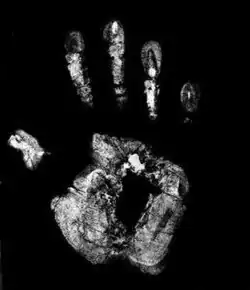 Möchte man einen schwarzen Abdruck auf weißem Papier haben so muss nach dem Abdrücken der Hand/des Fußes zuerst fixiert werden. Weitere Arbeitsschritte sind wässern und Fett entfernen, entwickeln, wässern, fixieren, schlusswässern.
