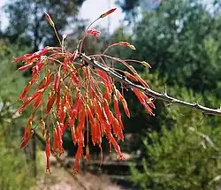Nach Regenfällen, im Frühjahr, beginnen die Pflanzen zu blühen. Viele Blüten stehen in rispigen, ährigen oder traubigen Blütenständen zusammen. Die zwittrigen, fünfzähligen Blüten besitzen ein doppeltes Perianth. Es sind fünf freie, ungleiche Kelchblätter vorhanden. Die fünf roten, blassvioletten, cremefarbenen oder gelben Kronblätter sind röhrig verwachsen. Es sind zehn oder mehr (bis 23) freie Staubblätter vorhanden. Drei Fruchtblätter sind zu einem oberständigen Fruchtknoten verwachsen. Jedes Fruchtknotenfach besitzt meist 14 bis 18 (6 bis 20) Samenanlagen. Die drei Griffel sind nur teilweise verwachsen.