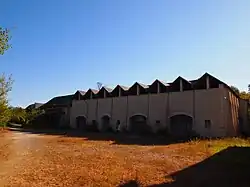 Hölzerner Schuppen und Decauville-Bahn