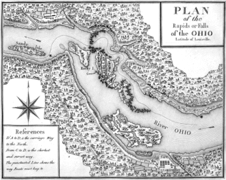 Die Falls of the Ohio liegen etwa 980 Flusskilometer vom Ursprung des Ohio bei Pittsburgh entfernt und waren bis zum Bau eines Kanals eine natürliche Barriere für den Schiffsverkehr, die nur bei ausreichend hohen Pegelständen für etwa zwei Monate im Jahr passierbar war. Aufgeschlossene harte Gesteinsbänke aus den fossilreichen devonischen Kalksteinen der Jeffersonville Limestone Formation bildeten auf einer Strecke von drei Kilometern im Flussbett Stromschnellen aus, wo der Ohio Felsen und Kalkklippen erodierte und dabei einen Höhenunterschied von etwa acht Metern überwand.[2][3] Durch den Zwangsstopp für Reisende entlang des Flusses und das nötige Umsetzen von Fracht, auf dem Weg von der Ostküste Richtung Westen bis zur Vereinigung mit dem Mississippi bei Cairo und weiter in Richtung Golf von Mexiko oder Westküste, entwickelten sich hier Siedlungen, aus denen später die Städte Louisville auf der Kentucky-Seite sowie Clarksville und Jeffersonville auf der Indiana-Seite hervorgingen.[4]