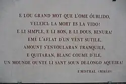 Frédéric Mistral starb im Jahr 1914 und wurde in Maillane beigesetzt.[1]