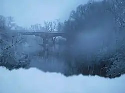 Verschneite Lahnufer an der Bogenbrücke in Bellnhausen (selber Standort und Tag).