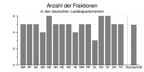Anzahl der Fraktionen in den deutschen Landesparlamenten und Durchschnitt