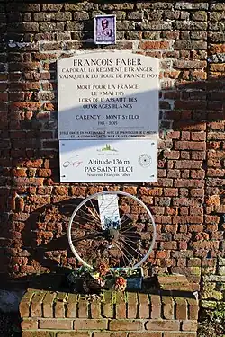 Nach einer zweimonatigen Ausbildung ging es für Faber an die Front. Am 9. Mai 1915 begann die Lorettoschlacht bei La Bassée und Arras, eine der verlustreichsten Ereignisse des Krieges. Er fiel am ersten Tag der Offensive und gehörte zu den 1800 toten Legionären, die Tage später in einem Massengrab beerdigt wurden. Er soll bei dem Versuch, einem verletzten Soldaten zu helfen, erschossen worden sein.[2]