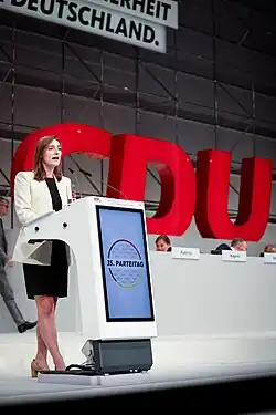 - ↑ Peter Carstens: CDU stimmt auf Parteitag für Frauenquote. Hrsg.: Frankfurter Allgemeine Zeitung. 9. September 2022, ISSN 0174-4909 (online [abgerufen am 5. Oktober 2023]).