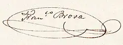- ↑ Der richtige Name, wie er selbst ihn schreibt, lautet Francesc Brosa i Casanobas (spanisch Francisco Brosa y Casanobas). In manchen Publikationen und Lexika findet man den ersten Familiennamen irrtümlich als „Brossa“ mit zwei s geschrieben, oder den zweiten Familiennamen als „Casanovas“ mit v statt b, was auch falsch ist. Das Buch Los maestros de obras de Barcelona von Juan Bassegoda Nonell, obwohl es das Resultat einer exzellenten langjährigen Forschungsarbeit ist, enthält fast alle falschen Variationen des Namens; er wird dort sogar einmal mit einem anderen Baumeister verwechselt (Jaime Brossa Mascaró) und wird Francisco Brossa Mascaró genannt (?!).