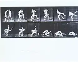 Kein anderes Motiv hat Bacons Arbeiten stärker inspiriert als die Bewegungsstudien von Eadweard Muybridge. Dessen Fotoreihen dokumentieren sequentielle Abläufe menschlicher und tierischer Körper. Ihre Bewegung vollzieht sich in einem zeitlichen Nacheinander und einem räumlichen Hintereinander. Ganz ähnlich hatten Marcel Duchamp (Akt, eine Treppe hinabsteigend, 1912) und Umberto Boccioni ihre futuristischen Bilder gestaltet, als raumzeitliche Abfolgen, als ein Nebeneinander zusammenhängender Körperstellungen. Bacon hingegen verzichtet auf die Darstellung der Bewegung im Raum. Bei ihm sind die Bewegungsphasen übereinander geblendet, so als schnitt man die Figuren Muybridges aus und projizierte sie übereinander. Die Schnitte im Bewegungsablauf erfährt der Betrachter als Schnitte des Körpers. So entsteht eine Identität von Bewegung und Verletzung. Das, was der Betrachter als körperliche Verformung wahrnimmt, sind fehlende Verbindungsglieder der Bewegungssequenz.