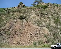 Der Franciscan-Komplex besteht aus sehr verschiedenartigen Gesteinen. Vertreten sind mafische vulkanische Gesteine („Greenstones“), Tiefsee-Hornsteine, grauwackenartige Sandsteine, Kalksteine, Serpentinite, Tonschiefer und metamorphe Gesteine, alle gestört, zerschuppt und auf chaotisch erscheinende Weise vermischt (tektonische Mélange).