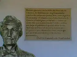 Aus dem Testament von Santander Tafel und Büste im Geburtshaus von Santander in Villa del Rosario
