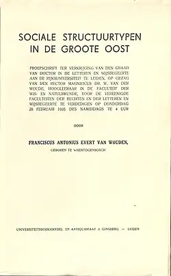 Die Leidener Dissertation aus dem Jahr 1935, die unter dem Titel Sociale structuurtypen in de Groote Oost (Soziale Strukturtypen in Ostindonesien) erschien, gilt als ein Klassiker der Ethnologie. Eine englische Übersetzung von Rodney Needham unter dem Titel Types of Social Structure in Eastern Indonesia erschien in der Translation Series des KITLV.