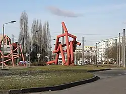 - ↑ Thorsten Goldberg, Ellena Olsen, Martin Schönfeld, Andreas Sommerer: Kunst in der Großsiedlung. Kunstwerke im öffentlichen Raum in Marzahn und Hellersdorf. Eine Dokumentation. (PDF; 2,2 MB) In: stadtentwicklung.berlin.de. Kommission für Kunst im öffentlichen Raum […] im Auftrag des Bezirksamtes Mahrzahn-Hellersdorf, S. 50, abgerufen am 24. August 2022.
