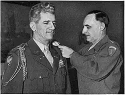Lucius D. Clay steckt Howley persönlich den Stern für seinen neuen Dienstgrad als Brigadegeneral an.