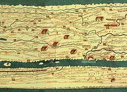 Detail der Tabula Peutingeriana, mit der Francia, dem Frankenland am oberen Rand