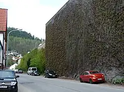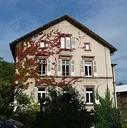 Mit der regulären Eröffnung der Bahnlinie von 1909 erhielt der Bahnhof als einzige Zwischenstation entlang der Strecke ein Empfangsgebäude, das wegen der eher untergeordneten Bedeutung vergleichsweise klein war. Mitte der 1970er Jahre wurde es abgebrochen und 200 Meter entfernt unweit der örtlichen Talstraße wieder errichtet. Bereits um die Jahrtausendwende war es nicht mehr bewohnt und heruntergekommen.