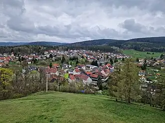 ![]() Blick vom Kriegerdenkmal auf den Ort