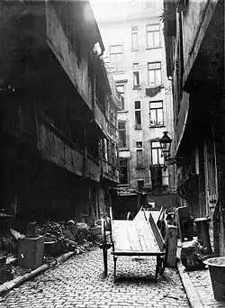Die mittelalterlichen Häuser, von ihren Hinterhöfen ganz zu schweigen, waren mittlerweile häufig in schlechtem Zustand. Die hygienischen Zustände verbesserten sich mit dem Bau einer Schwemmkanalisation nach englischem Vorbild ab 1867. Mehr und mehr Häuser wurden an das Trinkwassernetz angeschlossen, vor allem nach dem Bau einer Fernleitung aus dem Vogelsberg 1873. Im Zuge der Industrialisierung nach 1870 strömten zahlreiche Arbeiter in die Stadt, die in den heruntergekommenen Gebäuden schnell billigen Wohnraum fanden. Weite Teile der Altstadt galten nun als Wohngebiet des Proletariats und ärmerer Kleinbürger, wo Armut, Prostitution und Kriminalität überhandnahmen.