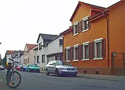 Das Wohngebiet der Gemeinde erstreckte sich um 1900 über eine nahezu rechteckige Fläche, die begrenzt wurde durch Langgasse (heute: Alt Heddernheim), Frankfurter Straße (Heddernheimer Landstraße), Jahnstraße (Marc-Aurel-Straße) und Altkönigstraße (Habelstraße).[45] Zwischen Frankfurter Straße und Altkönigstraße und parallel zu diesen verlief die Feldbergstraße (Gerningstraße); einzig Kirchstraße und Castellstraße behielten nach der Eingemeindung ihre überkommenen Namen, ferner die bereits außerhalb der Bebauungsgrenze zu den am Ortsrand befindlichen Fabriken von der Frankfurter Straße abzweigende Hessestraße. Die heutige Dillenburger Straße ist in einer Flurkarte aus dem Jahr 1904 noch als Feldweg eingezeichnet.[46] Schon 1915 waren dann aber bereits zahlreiche Neubauten entlang von Brühlstraße / Nassauer Straße sowie zwischen Antoninusstraße und Marc-Aurel-Straße entstanden.[47] Bereits 1905 waren die Eigenheime an der Nesselbuschstraße errichtet worden.