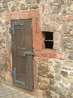- Außerdem ist der sogenannte „Gehorsam“ mit der noch immer vorhandenen Prangerkette am Fuße der ehemaligen Sankt Georgskapelle (auf deren Grundmauern die heutige Gustav-Adolf-Kirche steht) zu erwähnen. Hier wurden die Delinquenten tagsüber zum Gespött der Einwohner des Ortes angekettet und des Nachts wieder in das hinter der Türe befindliche „dunkle Loch“ verbracht.