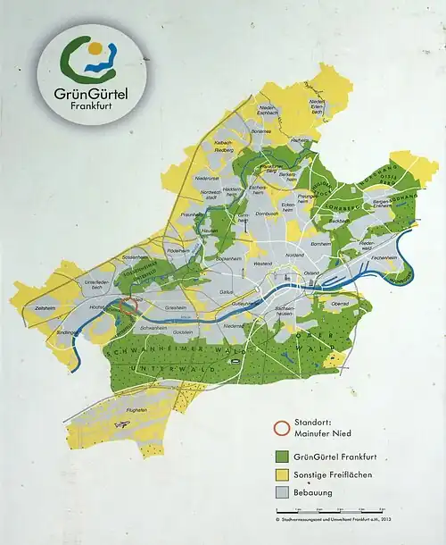 - ↑ Stadt Frankfurt am Main (Hrsg.): 20 Jahre GrünGürtel Frankfurt, Menschen, Daten und Projekte. Frankfurt, 2011, S. 6.