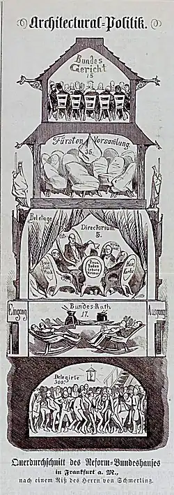 Nachdem Preußen die Einführung von Delegiertenversammlungen im Deutschen Bund verhindert hatte, setzte Österreich zu einem großen Reformplan an. Ludwig von Biegeleben, ein ehemaliger Unterstaatssekretär der Provisorischen Zentralgewalt, verfasste den Entwurf dazu, den umfassendsten und detailliertesten seit 1849. Die österreichische Regierung beschloss eine Fassung am 9. Juli 1863, die in Frankfurt einer Tagung der deutschen Fürsten vorgelegt werden sollte.[1]
