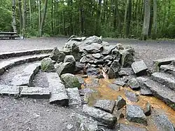 Im Stadtwald befinden sich mehrere Quellen. Das nördlich des Jacobiweihers gelegene Königsbrünnchen bildet die Fassung von vier Quellen und wurde 1881 errichtet. Das Wasser enthält Eisenhydroxid (Braunfärbung) und Schwefelwasserstoff (leicht fauliger Geruch). Das Quellwasser ist trinkbar, wurde jedoch noch nicht von offizieller Seite auf Wassergüte untersucht.[14] Nach wenigen Metern mündet der durch diese Quellen gespeiste Bach von rechts in den Königsbach. Weitere Brunnen im Stadtwald sind der in Stein gefasste und versiegte Königsbrunnen wenige Meter westlich des Königsbrünnchens (beide Namen nehmen Bezug auf den einstigen königlichen Bannforst Wildbann Dreieich) sowie der Mörderbrunnen.[11] Der Name des Letzteren rührt von einer lokalen Volkssage her, die vor Ort auf einer Informationstafel dokumentiert ist.[15]