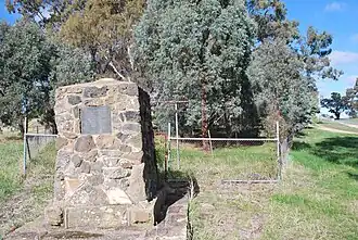 Monument in Franklinford. Text: „Edward Stone Parker 1802 - 1865 Regional Pioneer Protector of Aborigines established the Loddon Aboriginal Station, Homestead, Church and School near this site in 1841. His devoted service remains a challenge and inspiration. April 1966.“