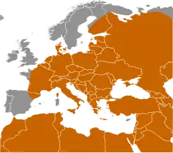 Verbreitung des Cro-Magnon in Europa, dem Nahen Osten und in Nordafrika um 30.000 BP