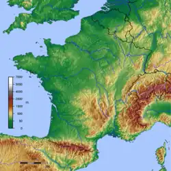 Topographische Karte. Beim Vergleich mit der unteren Karte erkennt man die bevorzugte Lage der Bilderhöhlen: an den Ausläufern von Gebirgen mit mächtigen Kalkformationen (Höhlenbildung), am Rand von Flusstälern und an Küsten (günstig für Jagd und Fischfang).