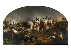 1813 tritt Österreich zusammen mit Preußen erneut in Kriegshandlungen gegen Frankreich ein, um endgültig die französische Vorherrschaft unter Napoleon Bonaparte in Europa zu beenden. Im Oktober schaffte es die Allianz von Russland, Österreich und Preußen den französischen Kaiser bei der Völkerschlacht von Leipzig zu schlagen.[24] Beim Kongress von Châtillon versuchte man einen Frieden zu schließen, jedoch brachen die Alliierten die Verhandlungen ab, da die französische Seite einen inakzeptablen Entwurf der Beschlüsse vorlag, der den Vorstellungen der Alliierten nicht entsprach. Der Krieg wurde fortgesetzt und bei der Schlacht von Arcis-sur-Aube erfuhr Napoleon seine endgültige Niederlage.[25]
