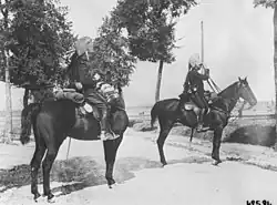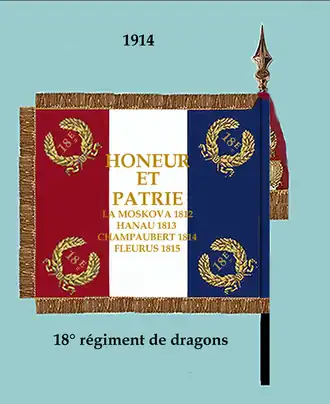 Am 8. September wurden die Reste der 8. Kavalleriedivision[note 14] nach Crépy-en-Valois beordert, um ein Unternehmen hinter den deutschen Linien in den Wäldern von Compiègne und Villers-Cotterêts durchzuführen.[44] Während dieser Unternehmung führte eine Escadron des „16e régiment de dragons“ am Abend des 11. September einen Angriff auf eine Kraftwagenkolonne aus, die Flugzeuge auf die Höhe von Mortefontaine (Aisne) transportierte. Zuerst eröffneten zwei abgesessene Züge das Feuer, dann attackierte ein berittener Zug, wurde aber durch das Feuer aus einem Maschinengewehr abgewehrt.[45][note 15] Am 10. September konnten zwei Reiter des „3e régiment de hussards“ bei Mont-l’Évêque 15 versprengte Infanteristen des Thüringischen Reserve-Infanterieregiments Nr. 94 zur Aufgabe zwingen und dabei die Fahne des 2. Bataillons erbeuten.[note 16] Der Capitaine Sonnois und der Maréchal-des-logis Noury machten dabei vier Gefangene und brachten die erbeutete Fahne nach Senlis.[46]