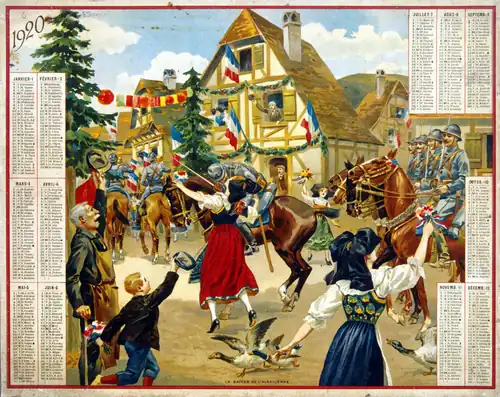 Les vedettes, dieses „patriotische“ Gemälde von Eugène Chaperon aus dem Jahre 1914 bezieht sich auf den Verlust von Elsaß-Lothringen 1871. Im Mittelpunkt stehen ein französischer Dragoner und ein preußischer Ulan, beide mit einer Lanze bewaffnet.