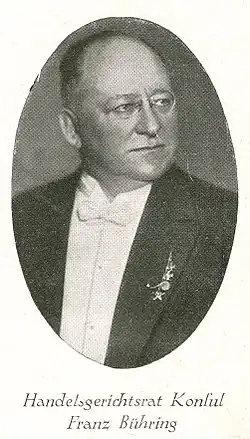 - ↑ a b c Georg Wenzel: Bühring, Franz, in ders.: Deutscher Wirtschaftsführer. Lebensgänge deutscher Persönlichkeiten. Ein Nachschlagebuch über 1300 Wirtschaftspersönlichkeiten unserer Zeit, bearbeitet unter Förderung wirtschaftlicher Organisationen der Industrie und des Handels, Hamburg [u. a.]: Hanseatische Verlags-Anstalt, 1929, S. 33; Vorschau über Google-Bücher