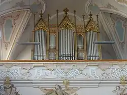 II/P | 16 | Im Gehäuse von 1783 von Anton Bayr. Mehrfach umgebaut und verändert. Eingelagert erhalten. 1985 Neubau im historischen Gehäuse durch Manfred Mathis. → Orgel |