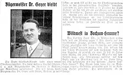 - ↑ Clemens Kreuzer: „Zwei Verfassungen und einem ‚Führer‘ seinen Treueeid geschworen“? Der Ehrenbürger Franz Geyer in der Bochumer Kommunalpolitik 1923–1946. In: Kortum-Gesellschaft Bochum (Hrsg.): Bochumer Ehrenbürger – Aspekte kommunaler Ehrung im Ruhrgebiet. Ardey, Münster 2020, ISBN 978-3-87023-453-9, S. 119.