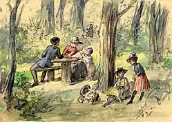 - Liebespaar im Park, in einer Ausstellung zur Nachlassversteigerung 1917.[2]