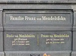 - ↑ Thomas Lackmann, Der Sohn meines Vaters: Abraham Mendelssohn Bartholdy und die Wege der Mendelssohns, Wallstein Verlag, 2008, ISBN 383530111X, S. 654.