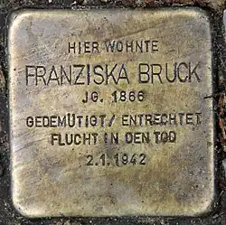 Am 22. Juni 2011 wurde an ihrer langjährigen Wohnadresse in der Prinzregentenstraße 75 in Berlin-Wilmersdorf ein Stolperstein für Franziska Bruck verlegt.[1]