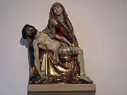 • unter der Empore eine Pietà von 1515 aus der Werkstatt Tilman Riemenschneiders, ursprünglich in der 1824 abgebrochenen Karmelitenkirche.