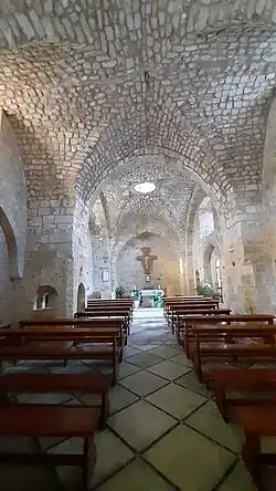 Das jetzige Gotteshaus schließt Strukturen einer Kreuzfahrerkirche aus dem 12. Jahrhundert ein,[41] wobei es sich wahrscheinlich um die mittelalterliche Andreaskirche Akkos handelt.[15][42][43] Die von Bruder Quirico Calella, der 2017 in den Libanon wechselte, angestrebte Ergrabung der mittelalterlichen Krypta bleibt ein Desideratum.[40]