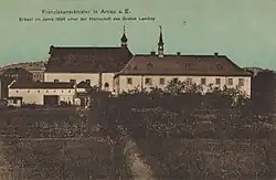 Im Jahre 1666 zogen die ersten Franziskaner in die ehemalige Jesuitenresidenz neben der Dekanatskirche ein, erbauten von 1667 bis 1670 daneben eine Kirche, die aber wegen Einsturzgefahr abgetragen werden musste. 1677 überließ die Stadt den Mönchen die 1597–1599 erbaute Dreifaltigkeits-Begräbniskirche vor dem Niedertor, an dem 1678–1684 das Kloster erbaut wurde. Vermutlich ist es vom Baumeister Wolfgang Dientzenhofer errichtet, der 1679 in Arnau das Bürgerrecht erhalten hatte und später in Prag und Amberg als Baumeister wirkte.