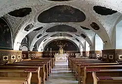 Die sogenannte Winterkirche als ursprüngliches Refektorium hat fünf Joche unter einem gedrückten Tonnengewölbe mit Stichkappen. Das Gewölbe erhielt im Ende des 17. Jahrhunderts eine reiche Stuckdekoration als Rahmung von Deckenbildern. An den Gewölbeansätzen sind bemerkenswerte Reliefs mit Köpfen von Franziskanerpatres. Die Decke wurde 1977/1978 restauriert.