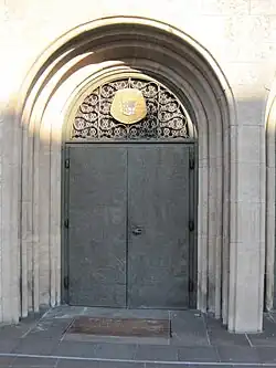 Die Bronzeverkleidungen der Hauptportale sind Werke des Mendener Bildhauers Wilhelm Hausmann. Sie zeigen Szenen aus dem Leben des Heiligen Franz von Assisi. Dazu gehört die berühmte Predigt des Heiligen Franziskus zu den Tieren beim linken Portal sowie sein Wirken als Ordensgründer am rechten Portal. Über dem linken Portal findet man außerdem das Wappen des Kardinals Lorenz Jaeger (1892 bis 1975). In seinem Episkopat wurde die neuerbaute Kirche geweiht. Rechts hingegen ist das Stadtwappen Hamms zu sehen.