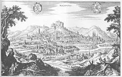 - ↑ Martin Zeiller: Marpurg. In: Matthäus Merian (Hrsg.): Topographia Hassiae et Regionum Vicinarum (= Topographia Germaniae. Band 7). 2. Auflage. Matthaeus Merians Erben, Frankfurt am Main 1655, S. 100–107 (Volltext [Wikisource]).