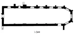 St. Katharina ist eine einschiffige, ursprünglich vierjochige Saalkirche mit 3/6-Schluss, die von einer Holzdecke überspannt wurde. Sie wurde 1716–1725 um zwei Joche verlängert. 1929 wurde die Kirche hinten rechts um eine Kapelle erweitert, die in den Klosterbereich hineinragt, zunächst mit dem Patrozinium Christkönig und seit 1967 als Marienkapelle. Vor dem Kloster wurde 1919/20 eine Prozessionskapelle mit dem Patrozinium der Heiligen Familie wurde 1966 abgebrochen.[3]
