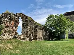Nach dem Tod des kinderlosen Ujlaki ging die Herrschaft an das Magnatengeschlecht Batthyány über.[11] Unter dem zum Protestantismus konvertierten Grundherren Graf Balthasar Batthyány wurden die Augustiner 1569 vertrieben. Das Kloster wurde von Balthasar erst selbst in Besitz genommen,[12] 1576 aber den Protestanten übergeben, die es bis 1634 für religiöse Zwecke und als Mittelschule nutzten. Im Jahre 1604 wurde das Kloster während eines Angriffs der Heiducken Stephan Bocskais auf Stadt und Burg Güssing beschädigt.[13] In welchem Ausmaß ist zwar unklar, da Kloster und Kirche aber weiter verwendet wurden, und 1620 und 1625 dort sogar Kirchensynoden abgehalten wurden, waren die Schäden vermutlich eher gering.[14] Als der zum Katholizismus konvertierte neue Grund- und Patronatsherr Graf Adam I. Batthyány die Protestanten aus seinem Herrschaftsgebiet verweisen ließ, kam es bei deren Abzug 1625 aber vermutlich zu größeren Beschädigungen der Gebäude.[15][16] Im Stiftungsbrief für den Nachfolgebau beschrieb Adam I. den schlechten Zustand des alten Klosters, das „teils durch die Ungunst der Zeitverhältnisse, teils durch Bosheit der Ketzer fast gänzlich zerstört worden ist.“.[17]